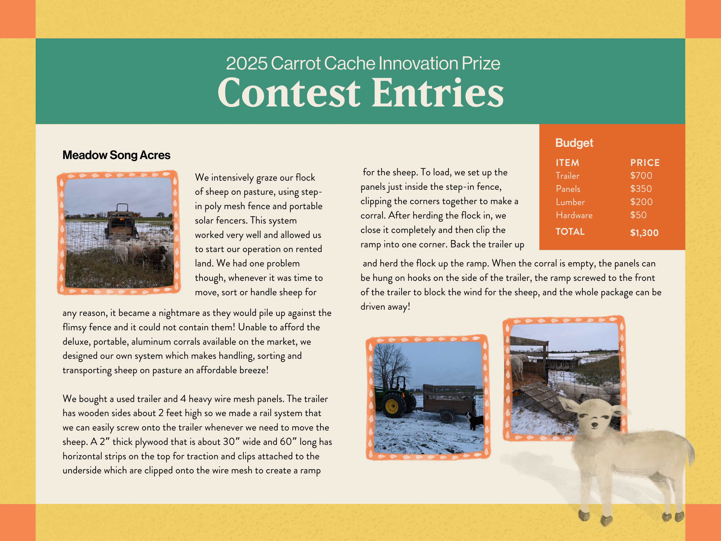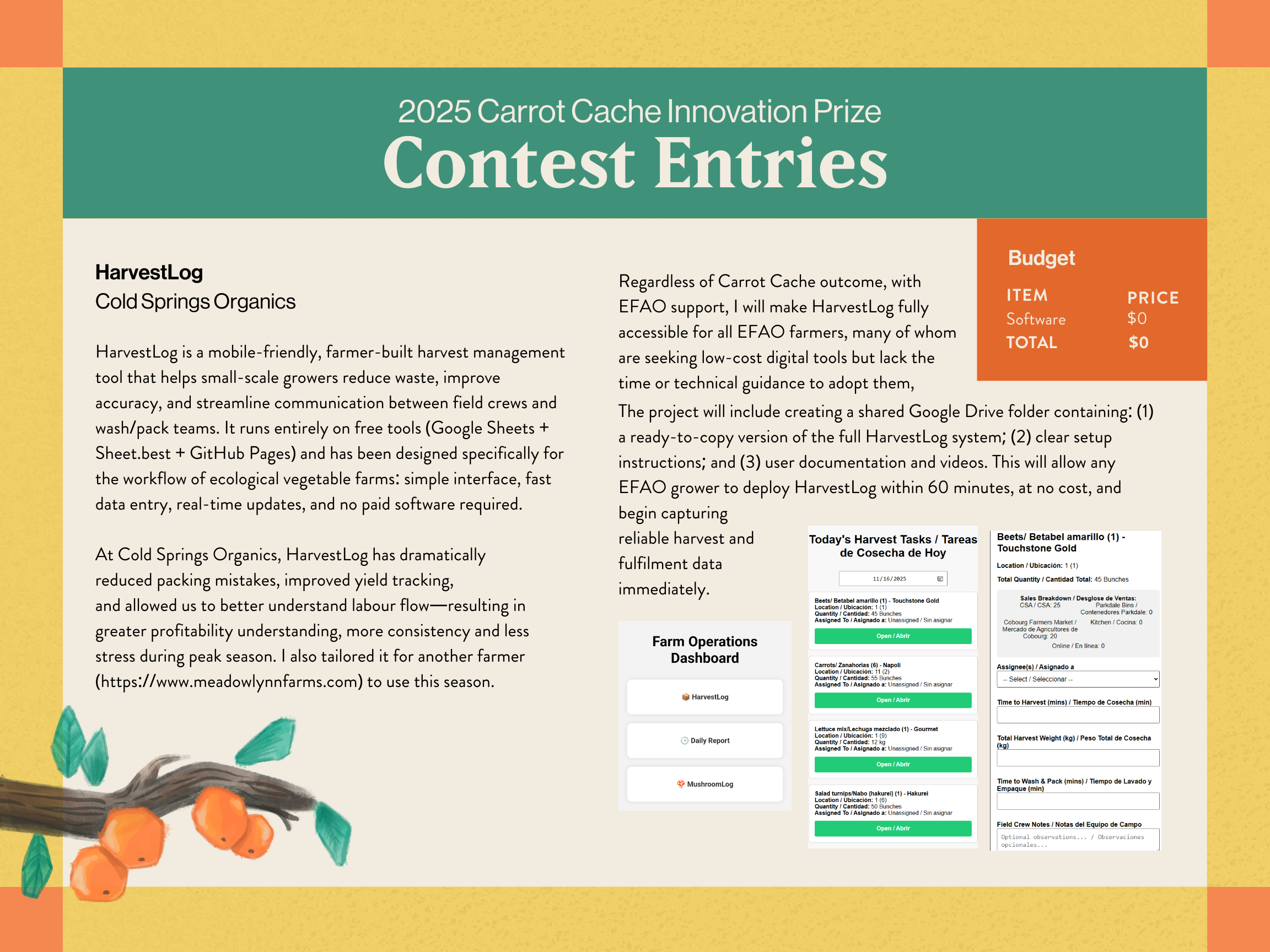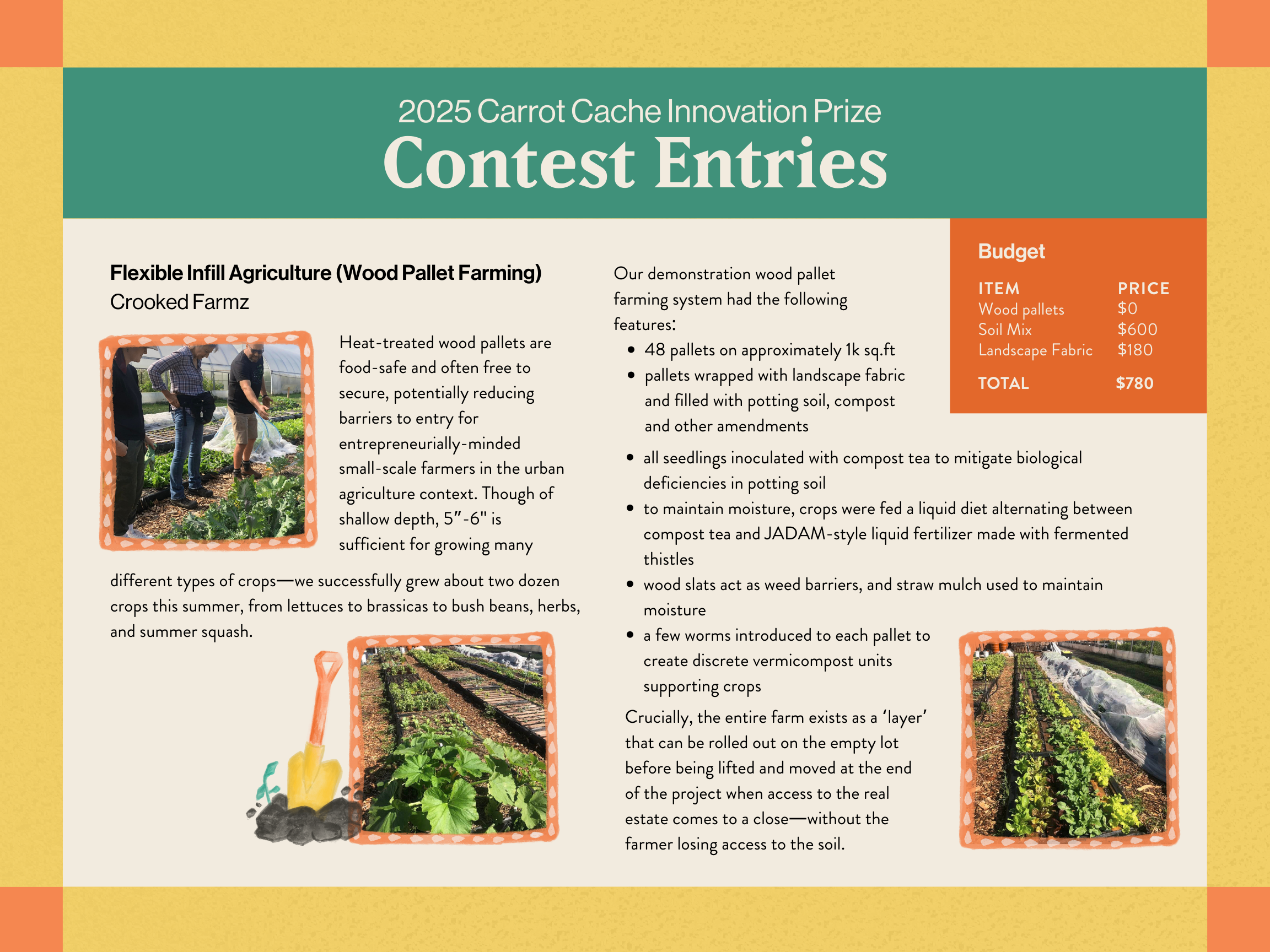 Every year, the Carrot Cache Innovation Prize highlights practical, low-cost ideas that farmers are already using in planting, harvesting, and managing food grown on their organic farms to build financial and environmental sustainability.